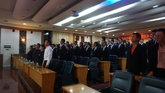 开班仪式开始,全体人员奏唱国歌,首先由第九届团总支学生会副主席张洁宇对干部培训的课程进行相应介绍以及安排,随后第九届团总支学生会干事代表包单煊博代表参加学习的全体成员承诺,将学习中做到:确立目标,履行责任;遵规守纪,服从管理。随后学院党委副书记田清旺发言,田清旺说:“不忘初心、牢记使命。”提醒我们不能忘记为同学服务的初心,努力履行作为学生干部的职责与义务。