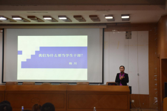“我们为什么要当学生干部?”这是学院团总支书记杨川开始授课时向同学们提出的问题,随后以三个要点:“发现更好的自己”、“认识更优秀的朋友”、“过充实的大学生活”对问题进行剖析解答,从中启发学生干部。最后杨川以“一切为了学生,为了学生的一切”结束了这堂讲座。