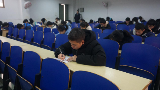 同学们在考场上认真做题,全神贯注,在试卷上奋笔疾书,发挥着自己的才智,遇到难题也没有放弃而是在积极思考,努力求解。