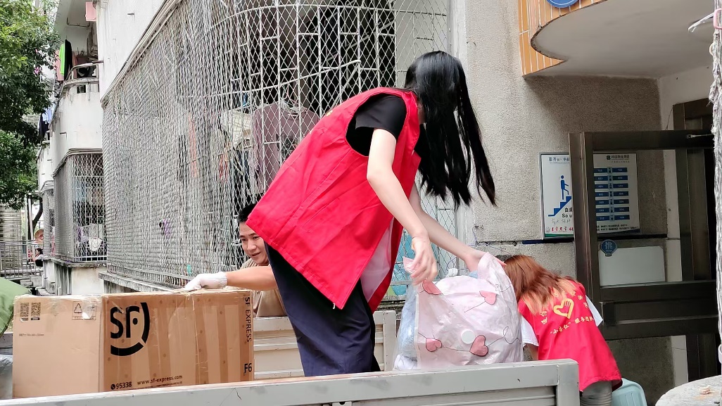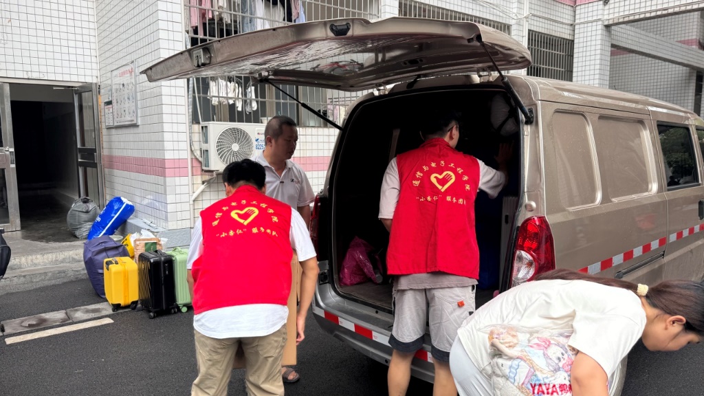 搬迁当日,随着首辆搬迁车辆抵达指定装车点,宿舍搬迁工作正式拉开帷幕。在新宿舍的卸车点,志愿者们迅速进入工作状态,形成了 “搬、运、装、卸、清” 的高效协作链条:部分志愿者主动对接学生,协助搬运行李箱、被褥等重物;还有一部分志愿者则在车辆周边引导秩序,确保行李按区域堆放、避免挤压损坏。
