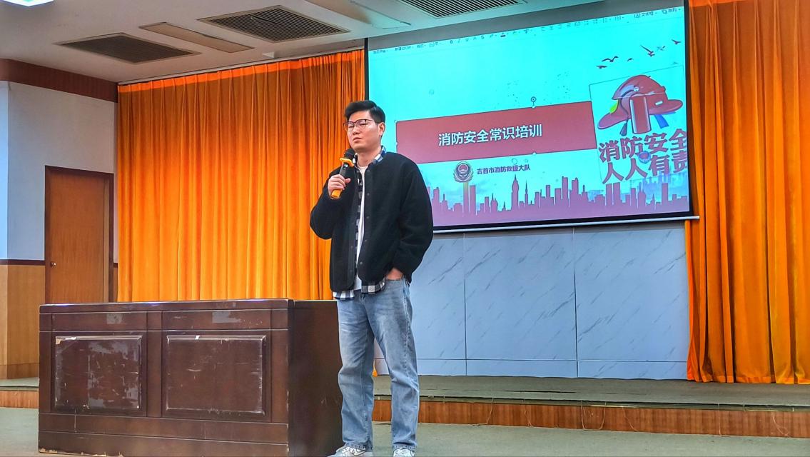 讲座特邀吉首市消防救援大队参谋黄锋、校党委保卫工作部刘梓源担任主讲嘉宾,围绕校园生活中常见的消防安全问题展开系统讲解。内容涵盖实验室用电规范、宿舍电器安全使用、电动自行车充电注意事项等重点场景,结合真实校园火灾案例,生动剖析了火灾隐患的成因与后果。