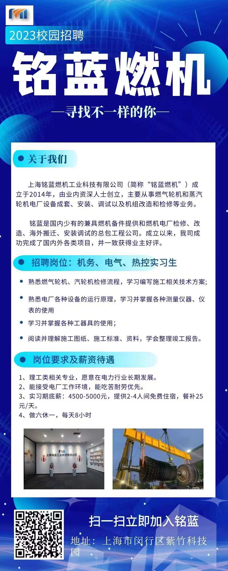 当前位置: 首页» 招生就业» 就业信息 上海铭蓝燃机工业科技有限公司2023校园招聘 时间:2023-02-14 点击: 作者: 上一条:特变电工湖南工程有限公司2023校园招聘简章 下一条:无锡信捷电气股份有限公司2023届秋招 【关闭】